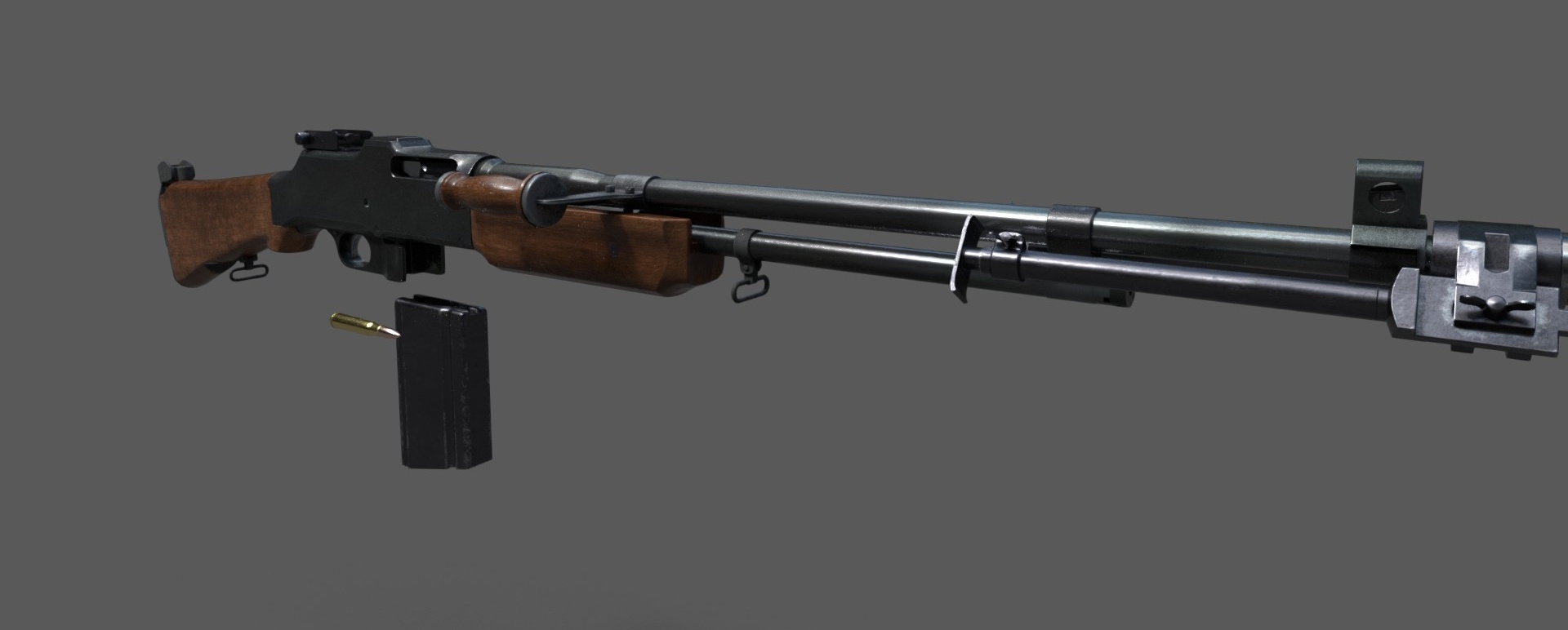 Model of a 1918 U.S Automatic Rifle Software Used :- Blender3D, Substance Painter Verts : 11569 Tris : 21550